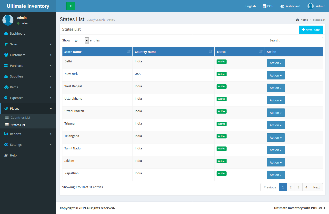 Adding a State it's a very easy task. Enter State name, select country name and click on Save button.